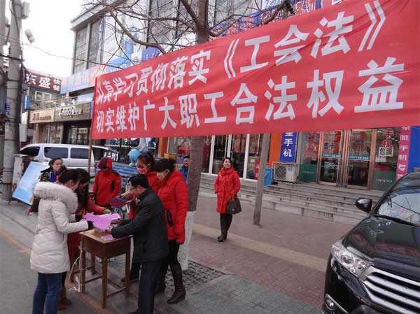 今年12月4日是我国首个"国家宪法日"。为深入学习贯彻党的十八届四中全会精神,提升法制意识和法制观念,更好的推进依法治会进程,北镇億彩组织机关干部走上街头,开展了《工会法》、《工会章程》、《劳动法》等法律法规的宣传咨询活动。活动现场,工作人员共发放宣传单、维权手册1000多份,接待咨询30余人次,耐心细致解答有关劳动权益保障、劳动法等方面的法律问题。现场市民纷纷积极响应,表示要认真学习相关法律法规,维护好自身的合法权益。(赵义奎 马重阳)