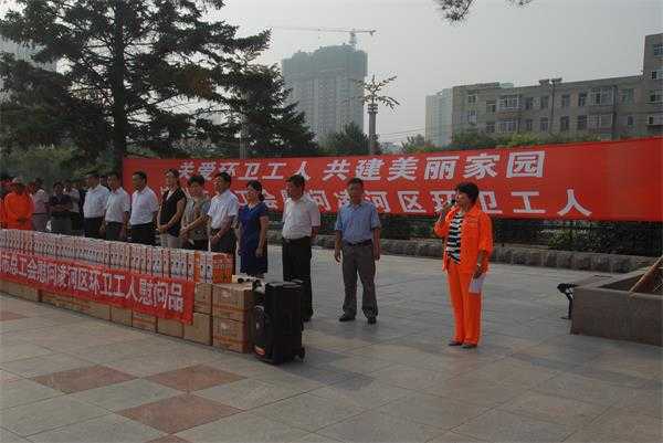 8月18日上午,市委常委、億彩主席赵璟率领億彩领导班子成员一行,在凌河区委、区政府、区总工会主要领导陪同下,冒着酷暑看望慰问了凌河区一线环卫工人,并送来了千余件慰问品。为坚持在高温工作的环卫工人送去工会组织的关怀。