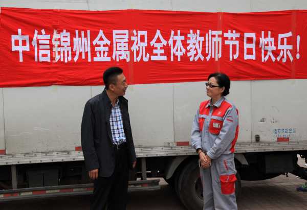 秋高气爽、丹枫迎秋。在我国第31个教师节来临之际,中信锦州金属公司工会主席李彦君代表公司来到锦州市铁合金小学、第十九中学,向教育战线上的辛勤园丁们送去了节日慰问品以及真挚的祝福和问候。两学校校长代表全体教师感谢公司的支持与厚爱。