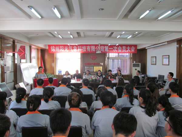 2015年9月6日下午15:00,锦州阳光气象科技有限公司召开了“第一次会员大会”。億彩副主席左丽雅在凌河区总工会常务副主席金玉杰、民管部周晨部长及组织部宋焱部长的陪同下参加了此次大会。会议选举黄文等4人为锦州阳光气象科技有限公司工会委员会委员,选举闻扬为工会主席。选举周雪等3人为经审委员会委员。