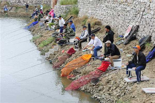 发现鱼浮有动静时,急忙发出“嘘嘘”声,生怕笑声吓跑了即将上钩的鱼儿。每当有选手钓到鱼时,都会让赛场热闹好一阵。当有同事起杆收鱼时,两旁的同事急忙丢下自己的鱼竿过来帮忙,一同享受着喜悦。随着竿起竿落,一条条鱼儿破水而出,场面十分热烈。