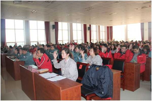职工代表大会在嘹亮的国歌声中拉开了帷幕,会议由工会主席孟京红主持。会上对2015年职代会提案落实情况及工资集体协商工作落实情况进行说明,并以无记名投票方式通过了《行政工作报告》和2016年工资专项集体合同和员工奖惩制度草案。总经理与工会主席现场签订工资专项集体合同。最后职工代表通过举手表决的方式通过职代会决议。
