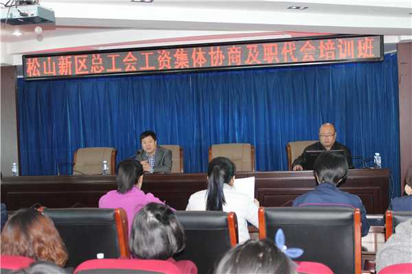 2016年3月25日上午,松山新区总工会在区九楼大会议室举办工资集体协商及职代会的培训班,億彩民管部周晨部长授课,参与培训的有全区企业及街道社区工会主席、人力资源部部长及工会工作人员。