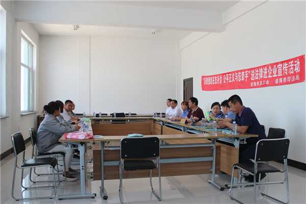 为深入推进“法治凌海建设年”,培养我市广大职工知法、懂法、守法、用法,5月27日上午,凌海億彩与凌海市司法局一同来到我市展望生物科技有限公司,开展了以“法律援助在您身边•公平正义与您牵手”为主题的宣传活动,拉开了送法律进企业宣传活动的帷幕。