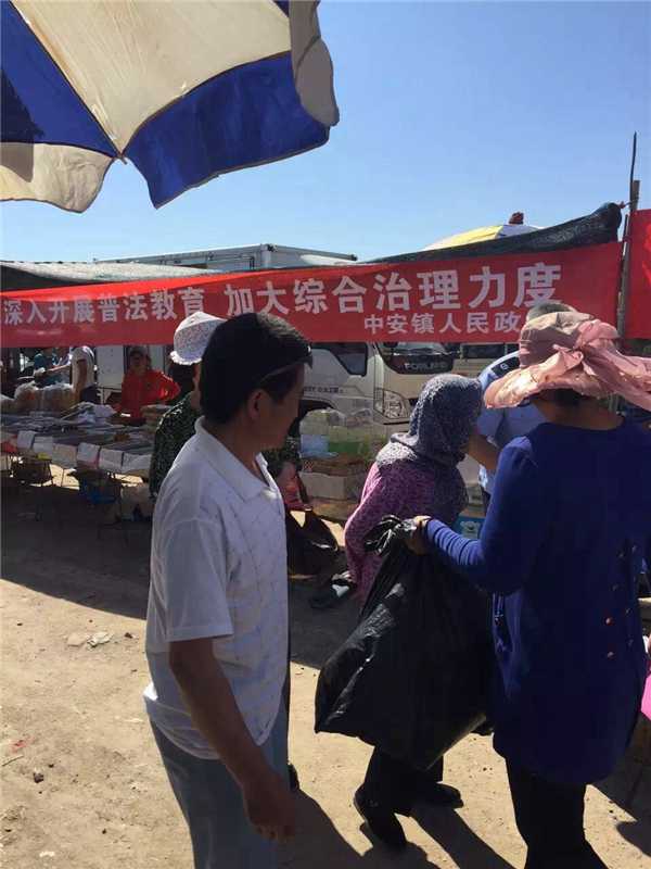 6月1日上午7:30中安镇政府司法所所长杨树森带着几名工作人员早早的来到了中安镇中安集上拉了条幅,走到群众中,为大家派发传册、宣传单进行普法宣传。宣传的法律主要是土地管理法、物权法、道路交通安全法等和老百姓相关的法律法规,在宣传的过程中大家争相了解,形成了良好氛围。