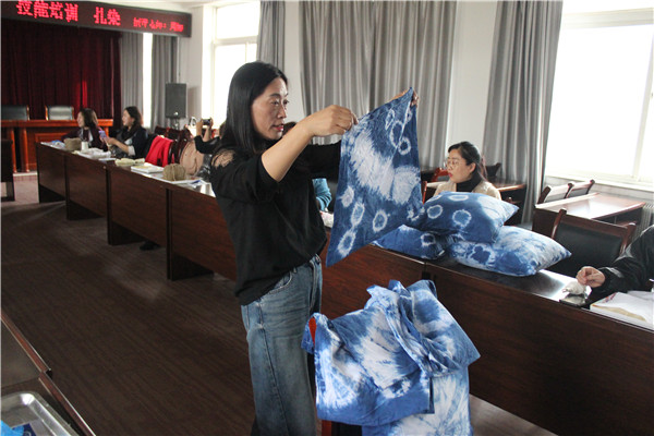 看着自己完成的扎染作品,大家都非常有成就感,此次培训活动使广大女职工对扎染的文化特色有了更进一步的了解,体验了民间艺术的神奇魅力和自由创作的快乐,陶冶了大家的情操,受到了广大女职工的一致好评。