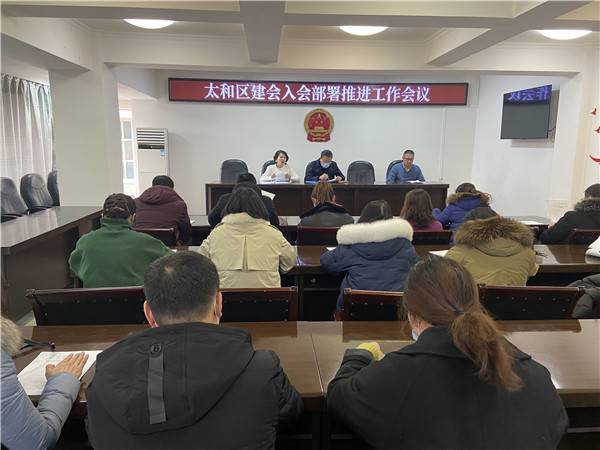 会议由太和区总工会副主席杨森主持,传达了省、市工会建会入会工作要求,并强调建会入会和实名制录入工作不仅是工会的重点工作也是工会的常态化工作,各街道及园区一定高度重视,共同推动建会入会和基层工会组织规范化建设工作顺利进行。太和区总工会党组书记、副主席鲁文超宣读了《太和区推进建会入会工作实施方案》,明确了各街道任务分工,落实主体责任,并要求各街道要坚持实事求是的原则,彻底摸清底数,推进建会入会工作。