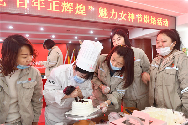 上午八点半,烘焙活动正式拉开帷幕,在专业烘培老师的指导下,无论是平时检修现场的“女汉子”,还是精打细算的管账“小能手”,都暂别工作和生活的压力,化身成“烘培大师”一展身手,用自己灵巧的双手和无限的创意,做出了一个个漂亮的蛋糕,色香味俱全,活动现场香气四溢,浸润在每个人的心田里。烘焙完毕后,女职工们互相品尝着自己的劳动成果,欢笑声此起彼伏,完全沉浸在烘焙带来的无限乐趣中。
