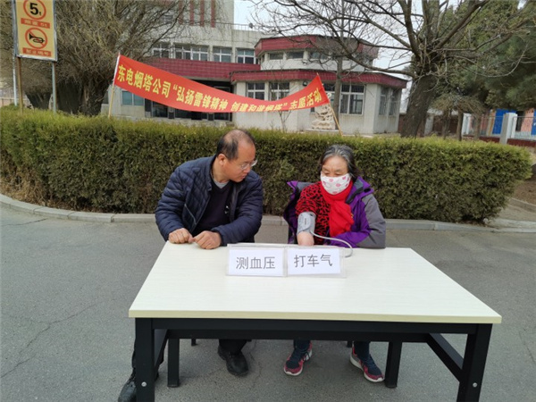另一队志愿者们在办公楼前设立了便民服务点,为居民们提供量血压和打车气的服务,发放增强消防安全意识宣传单,为大家普及消防安全知识。志愿者们忙碌勤劳的身影成为烟塔公司的一道亮丽风景线。