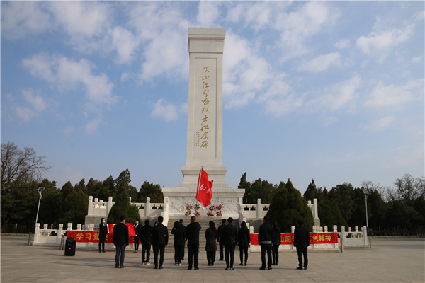 在庄严的烈士纪念碑前,全体党员干部共同聆听黑山阻击战战史,追忆革命先辈抛头颅洒热血的峥嵘岁月。大家静默肃立,向革命烈士默哀,敬献花篮、鞠躬行礼,瞻仰纪念碑,在祭扫中寄托无限崇敬,在缅怀中重温壮烈情怀。全体党员郑重地高举右拳重温入党誓词,用铮铮誓言砺初心、践使命,深刻铭记革命先烈们的丰功伟绩,感恩他们用宝贵生命换来了今天的繁荣昌盛。