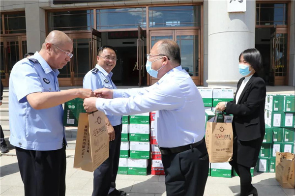 随后,慰问组来到义县公安局、十八个乡镇和部分隔离点,感谢公安干警、社区工作者和隔离点工作人员的辛苦付出,送去了慰问物资。并叮嘱他们在接下来的工作中继续抓住重点,做好疫苗接种和个人防护的普及。同时,持续落实“外防输入、内防反弹”工作部署,确保措施得力、行之有效,守护人民健康、维护社会稳定。