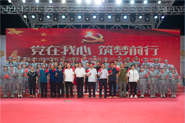 6月30日晚7时,由市文化旅游和广播电视局、市金属新材料协会、太和区委组织部、区总工会、区工商联共同主办的以“讴歌伟大时代 喜庆建党百年”为主题的长征组歌合唱音乐会,在东湖公园文化广场成功举办,来自各行各业的广大职工们相聚在这里,共同为中国共产党百年华诞献礼。