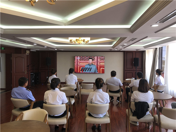 7月1日上午,滨海新区总工会在职工文体活动中心,组织全体干部集体收看了庆祝大会直播。同时,为营造庆祝建党百年热烈氛围,滨海新区总工会利用职工文体活动中心对外LED屏幕,不间断滚动播出庆祝中国共产党成立100周年宣传标语,并在公众微信号“滨海工会”发布各基层工会庆祝活动的相关信息。