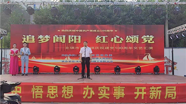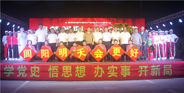 值此中国共产党建党100周年之际,闾阳镇工会联合会为活跃职工和群众文化生活,于7月2日下午5点30分,由闾阳镇党委、政府主办,闾阳镇工会联合会承办的“追梦闾阳 红心颂党”庆祝建党100周年文艺汇演在石堡子村“百花谷”景区盛大开幕。本次活动由闾阳镇党委副书记兼工会主席王旭主持。