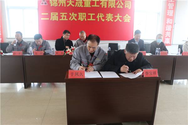 在职工代表大会阶段,锦州天晟重工有限公司董事长李宝祥全面总结了2021年度的企业工作,发布了2022年企业规划和目标任务,明确了企业发展方向;47名职工代表听取并以无记名投票方式表决通过了《工资专项集体合同草案》;职工方代表工会主席于凤久和企业方代表董事长李宝祥签订了《工资专项集体合同》;表决通过了大会决议。