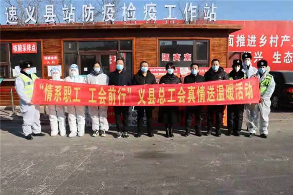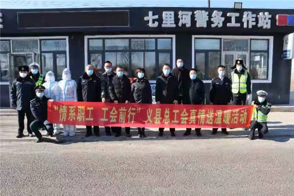 义县总工会一直践行服务职工群众,服务振兴发展理念,持续强化情系职工工会前行品牌。为在新冠疫情防控压力下当好职工的娘家人,近期,义县总工会对县域内7个疫情防控检查点走访慰问,并送去牛奶、方便面等物资,总价值为15000元。义县人民政府副县长王惟、县总工会常务副主席王维彬、副主席谢东涛参加活动。