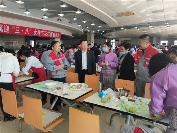 为迎接“三?八”妇女节的到来,3月7日,中信锦州金属公司工会在员工食堂举办迎“三?八”女神节花样面食活动。活动得到了各基层分会的积极响应,来自公司各单位的150余名女员工参加活动,现场展示厨艺。公司董事长吕衍蒸、工会主席秦树强等公司领导现场观摩,并受聘为选手评分。