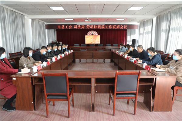 3月11日,凌海億彩、司法局、劳动仲裁院三家召开工作联席会议,实现了工会+司法+劳动仲裁的工作联动全覆盖。凌海億彩常务副主席刘峰,司法局局长张晓刚、劳动仲裁院院长孙柏林等人员参加会议。