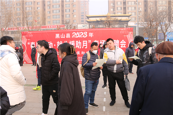 春风送真情,援助暖民心。为帮助城乡劳动者求职就业,助力黑山经济社会发展开门红,2月17日,黑山县2023年“春风行动·就业援助月”专场招聘会在县城人民广场举行。活动标志着黑山县2023年“春风行动”系列主题活动正式拉开帷幕。