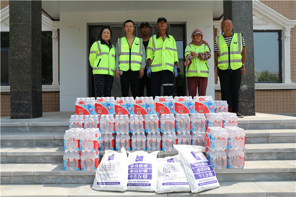 环卫工人顶着烈日、忍受高温和酷暑,日复一日地见证城市的黎明黄昏,始终默默坚守在各自岗位上,常年在“脏乱差”的环境中去完成日常清洁工作。环卫工人李大爷说:“现在天气太热了,一轮清扫工作下来,衣服是干了又湿,湿了又干,能喝到你们送的水,我感到非常开心。”