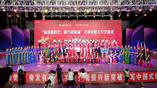 9月23日,由太和区总工会主办,太和区工商业联合会、太和区妇女联合会、共青团锦州市太和区委员会、锦州市太和区冶金行业协会协办的“奋进新时代 聚力谱新篇”庆祝中华人民共和国成立74周年太和区职工文艺晚会在东湖公园文化广场成功举办,来自各行各业的广大职工们相聚在这里共享文化盛宴,共同喜迎建国74周年。锦州市文联主席籍馨,锦州市工商联党委书记、市统战部副部长卫铁智,锦州市工商联副主席王国民,锦州市文旅和广电局发展处处长庞大明,太和区政协主席、总工会主席邱建华,太和区政协副主席、工商联主席莫惠出席活动。