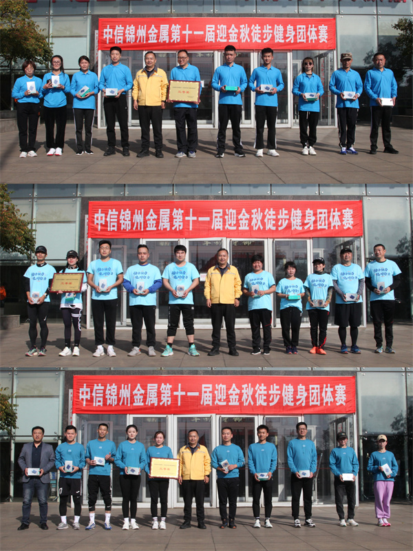 为全面贯彻党的二十大精神,深入学习贯彻落实中国工会十八大精神,推动全民健身运动开展,近日,中信锦州金属工会举办第十一届“迎金秋”徒步健身团体赛。公司董事长吕衍蒸,副董事长孙志鹏,纪委书记、工会主席秦树强应邀出席,并为获奖队员颁奖。