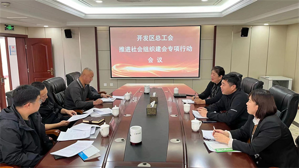 11月14日下午,开发区总工会召开全区社会组织建会入会工作推进会。开发区各街道负责工会工作的副书记、工会干事参加会议。