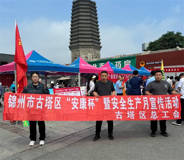 今年6月是第23个全国“安全生产月”,主题是“人人讲安全 个个会应急——畅通生命通道”。为筑牢安全生产防线,守护生命健康安全,古塔区总工会开展2024“安全生产月”暨“安康杯”宣传活动,进一步增强企业和广大职工群众的安全意识,筑牢安全生产底线。