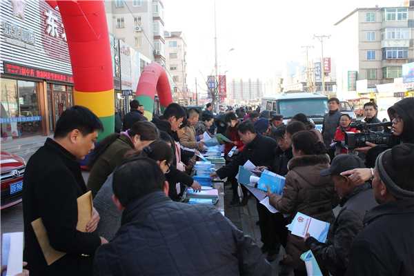 3月8日,由凌海億彩和凌海市劳动管理就业局联合主办的2017年“春风行动”活动在我市商贸城门前举行。