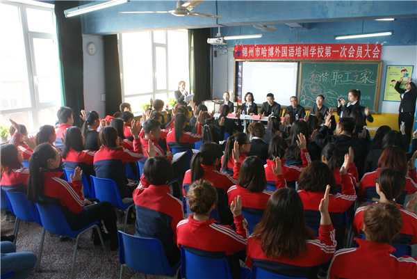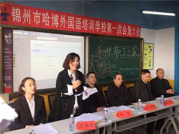 锦州市哈博外国语培训学校是凌河区享有盛誉的外语培训机构,现拥有多所分校,学校教学环境优雅,教学设备完善,标准化的教室,专业的语音设备,教师均毕业于国内知名高校英语专业,具有在丰富教学经验,师资力量雄厚,办学成果突出。多次获得“省民办教育协会优秀学校”,“市民办教育先进单位”等荣誉。锦州市哈博外国语培训学校第一次会员大会的召开,标志着哈博工会职能的健全和完善,标志着广大职工与学校管理层之间又多了一道沟通的渠道和桥梁。