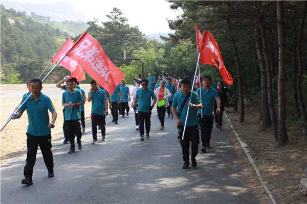 为了增加活动的趣味性,登山之初,将机关干部们分成了兄弟连队、飞虎队、霹雳队、红苹果队四队,形成队与队之间的对抗赛形式。上午七点,大家着统一服装共同乘车来到大芦花景区山脚下,由各队领队带领队员进行赛前的动员,大家喊着响亮的口号开始了登山。