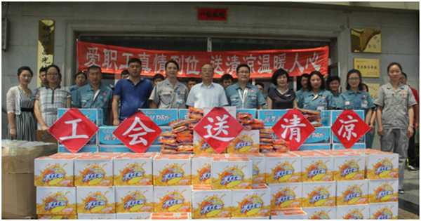 7月6日上午,锦州滨海新区工委蒋书记、区总工会沈主席一行来到阳光能源,将防暑降温慰问品发到员工手中,为他们送去盛夏清凉,体现了区总工会对企业职工的亲切关怀。