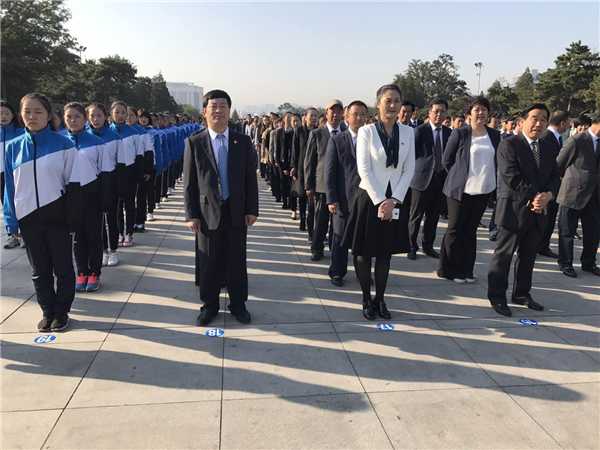 9月30日上午,在全国第四个烈士纪念日来临之际,松山新区总工会组织区机关事业单位、社会事业发展局、城市综合执法、环卫处等120名代表在党工委书记杨淑梅、区总工会主席张强的带领下,参加锦州市各界代表在锦州烈士陵园举行的烈士纪念日公祭活动。