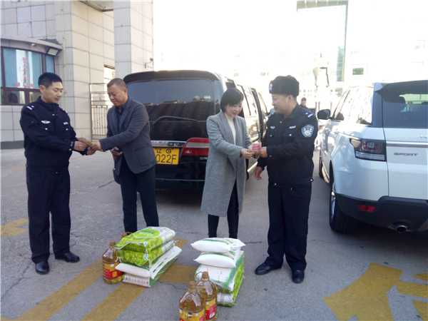 在沟帮子九年一贯制学校门口,将慰问品和慰问金亲自发放到他们手中,赞叹他们不畏严寒坚守一线为孩子们保驾护航的可贵精神,并鼓励他们安心工作,工会组织会永远关注、关爱他们。
