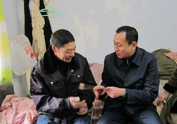 在牡丹社区工会联合会主席潘玉华的陪同下,马驰、王晓光主席还深入到失业困难职工武振启家中走访,坐在武振启家的床头马驰主席拉着他的手详细询问了他的家庭情况、生活和健康状况,当前存在的突出困难,鼓励他坚定生活信心,克服暂时困难,争取早日摆脱困境,同时嘱托陪同走访的社区工会干部要时刻关注困难职工的生活,擦亮“有困难、找工会”的牌子,真正当好困难职工的贴心人和暖心人。