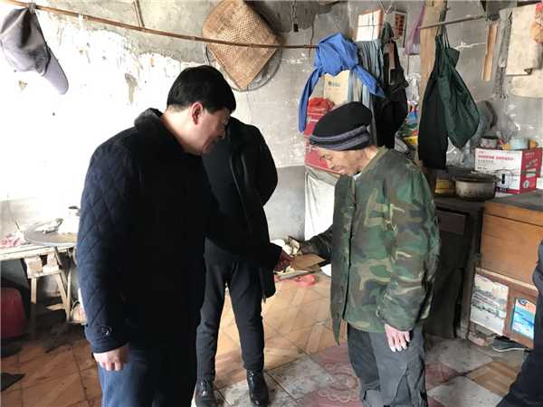 2月12日上午,在新春佳节即将到来之际,松山新区总工会主席张强带领松山新区工会全体党员走访慰问柏家村贫困户,为他们送去慰问金和节日的祝福。
