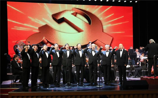《红旗颂》拉开了本场音乐会的序幕。随后,《我和我的祖国》、《勿忘初心》、《激情燃烧的岁月》、《唱支山歌给党听》等17首主旋律歌曲,在演唱者和交响乐团音乐家们的演奏下完美呈现。一首首曲目,一段段岁月,传递出宏伟跌宕的史诗情怀和奋勇无畏的红色精神,恢宏展现、激情再现、交响互现中国共产党“百年青春”所具有的强大生命力和无限可能性。当那首耳熟能详的《没有共产党就没有新中国》音乐响起时,现场观众们热血沸腾,掌声如潮……
