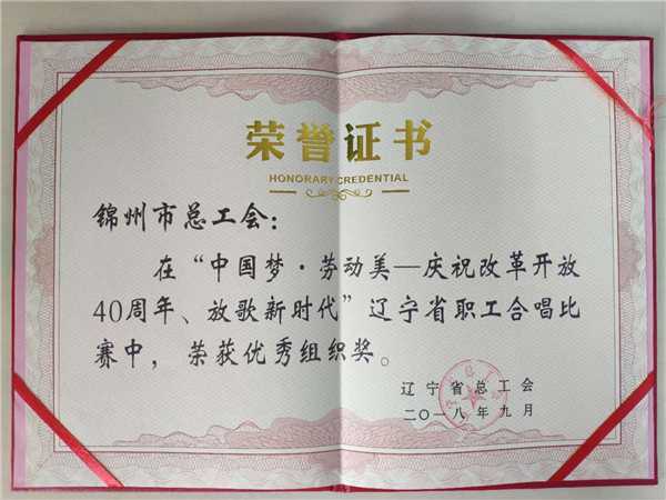 由锦州億彩精心筛选,72人组成的“锦州市职工合唱团”代表我市职工参赛,参赛曲目为《我爱你中国》、《天路》。曲目优雅婉转、声部层级分明、合声自然和谐、堪称天籁之音,我市职工合唱团的演唱赢得专业评委的高分,博得现场观众的热烈掌声,最终获得大赛金奖的佳绩,锦州億彩荣获优秀组织奖。