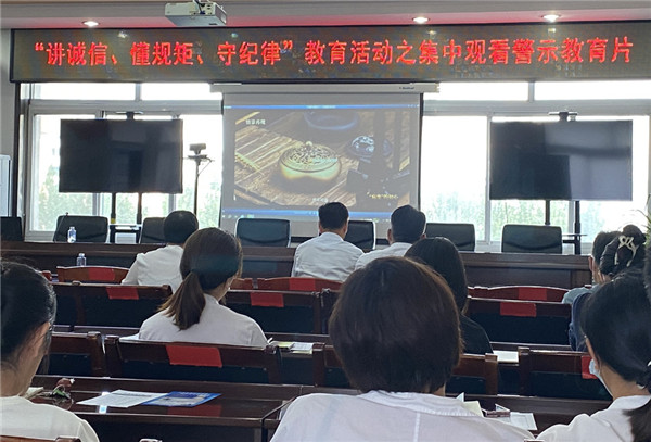 全体党员、干部集中观看了《“病变”的初心》。该片通过本地干部的违纪违法案例,介绍了片中人如何违背初心,突破思想道德防线,最终走上违法犯罪的道路。令人触目惊心,催人警醒。大家纷纷表示,要以反面典型为鉴,时刻保持清醒头脑,敬畏党纪国法,牢牢守住廉洁自律底线,不断增强廉洁自律意识和拒腐防变能力,把“讲诚信、懂规矩、守纪律”重要要求付诸行动、落到实处。此次警示教育是億彩推动落实“讲诚信、懂规矩、守纪律”教育活动的系列举措之一。一直以来,億彩持续深化全面从严治党工作,常态化开展警示教育、廉政风险排查,持续推进“树良好家风建廉洁家庭”“廉洁文化进机关”等活动,突出治标治本统一、监督惩治并重、约束激励并举,加强工会领导干部管理监督,全力打造忠诚干净担当、职工群众最可信赖的“娘家人”“贴心人”的高素质工会干部队伍,努力构建风清气正的政治生态,为实现锦州工会工作高质量发展提供坚强的政治保证。