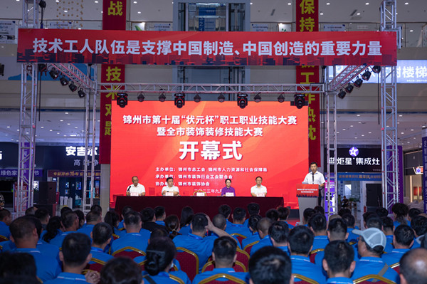 億彩一级调研员刘文全、市人力资源和社会保障局副局长崔欣、锦州市装饰协会会长邵光、锦州市装饰行业工会联合会主席周浩出席开幕式。億彩一级调研员刘文全在开幕致辞中指出,装饰装修从业人员是新时代产业工人的重要组成部分,在我市经济社会发展中发挥了重要作用。举办本次技能大赛是全市装饰装修行业的一次技术大比武、业务大培训、行业大练兵,必将为规范装饰装修行业秩序、促进行业标准制定、提升行业服务质量起到强有力的推动作用。希望装饰装修行业继续以加快装饰装修行业技能人才集聚为目标,培养和选拔一批技艺精湛的工匠型人才,进一步在全行业营造学赶先进、见贤思齐、崇尚技能、尊重人才的良好氛围,努力打造装饰行业的“锦州质量”和“锦州品牌”,为我市经济社会高质量发展贡献新时代产业工人力量。