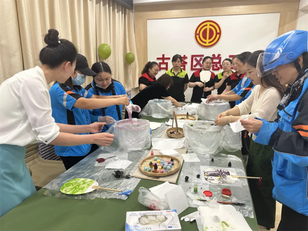 为进一步提升新业态及企业一线女职工业余文化生活品质,提高女职工的审美情趣和艺术修养,体验优秀传统文化之美,古塔区总工会精心策划了以“会‘新’聚力 暖心同行”为主题的“蕙心兰质”女职工共创课堂之手工漆扇制作活动,并邀请了专业老师进行授课。来自基层工会的新就业形态女性劳动者、企业一线女职工代表等20余人参加了活动。