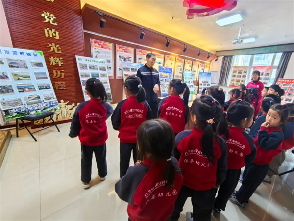 随后,陈爷爷带领孩子们观看展板上的老照片,这些照片如同一扇扇窗,打开了时间的闸门,让在场的孩子们都能感受到那份跨越时空的情感共鸣。从黑白到彩色,从青涩到成熟,每一张照片都是一个故事,每一段文字都散发着厚重的历史气息,引导着孩子们感知今天幸福生活的来之不易,同时陈爷爷鼓励孩子们要传承革命精神,好好学习,将来为建设伟大祖国贡献力量。