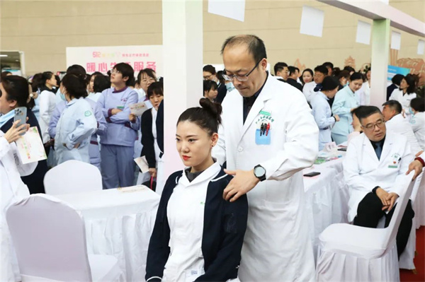 健康咨询义诊区,大家可以进行减重咨询、口腔检查、心理咨询和妇科咨询等,来自中医医院的专家还现场为护士们运用正骨手法治疗各类颈椎病、腰椎间盘突出症、肩周炎、膝关节骨性关节病、网球肘等各类运动损伤疾病。
