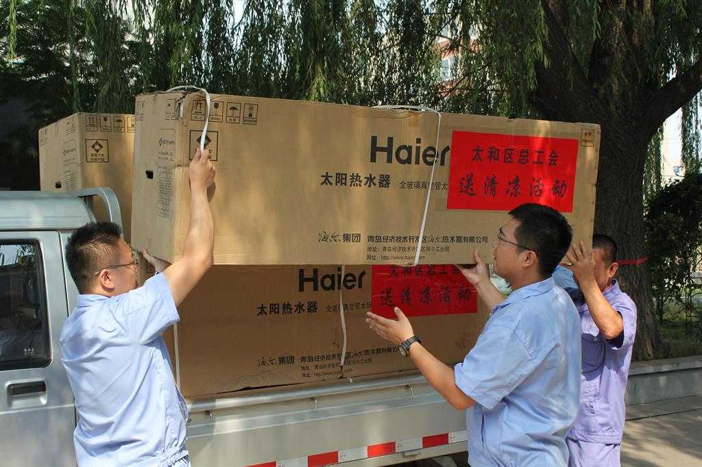 在太和区总工会常务副主席李斌的带领下,区工会一行七人先后来到了辽宁森林木纸业有限公司、锦州长泽精工机械厂等6家企业,为他们送去了太阳能热水器、空调等解暑降温电器,受到了职工的热烈欢迎。