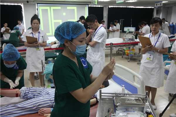 今年的竞赛形式与以往有两处不同,一是他们在前几届护理专业技能大赛的基础上,将医生的专业技能加入到了今年的比赛之中,这种创新和变化,丰富了竞赛的内容,突出了理论和实际的结合、强调了医生和护士的配合,诠释的是时间和效率的关系。二是把省属、市直和县(市)区分成三组进行比赛,目的就是想通过这种竞赛形式,在全市医疗系统内进一步掀起全员参与、全员训练、全员提高医护岗位技能训练和竞赛热潮,营造广大医护人员钻研业务、提高技术水平的学习氛围,促进医护人员队伍建设和发展,使医护人员队伍的综合素质和整体水平得到了全面提升。