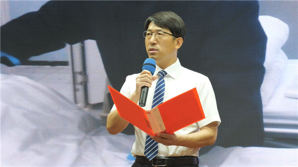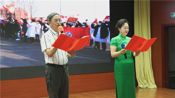 锦州医科大学附属第一医院党委副书记、院长李振兴,做为驰援武汉的辽宁医疗队二队领队,在出征时他看着自己身边的502名战友,默默发誓:一定带你们安全健康地回来。经过51天的艰苦奋战,他和他的战友,救治患者547人,治愈出院500人,所有战友零感染,他兑现了自己的诺言。在返程的车里,李振兴默默地流下了眼泪。“今天在这里举行抗疫朗诵会,让我们又回想起了当时在武汉雷神山医院抗疫过程中的点点滴滴,所有的队员在抗疫一线克服了重重困难,展现了辽宁的长子情怀,忠诚担当的精神,展现了医者的大爱情怀,团结奋进的精神。因为当前进入到常态化疫情的发展情况,尤其是从武汉回来的这些战疫一线医疗队员积累了大量的工作经验,当前回归到自己的工作岗位上,所有队员将这些工作经验迅速应用到自己所在的医疗工作实践之中,也为咱们锦城的百姓为辽西的百姓做好健康卫士。”