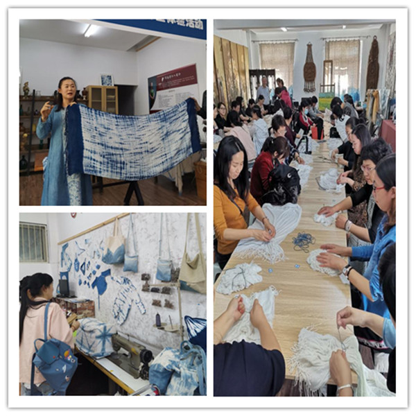 近日,锦州市教科文卫金融服务工会组织我市大中专院校、基础教育学校联合会40名优秀教师开展职工创新工作室传统工艺实践活动。辽宁省非遗项目“满族荷包”第四代传承人、锦州职工创新工作室主持人宋春芳进行“植物扎染”传统工艺的体验指导,使教师们在释放创新潜能的同时更体验到了传统艺术的魅力。
