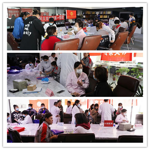 医疗队为英冠的职工做了血压、血糖、彩超、心理咨询、口腔、心电图等相关检查,并详细询问职工们的身体状况,解答关于常见病、多发病的预防诊治和各种疑难问题。在武汉雷神山医院支援的锦州医科大学附属第一医院心内科抗疫英雄王锦丽医生,耐心细致地查看职工的心电图报告、分析病情,讲解注意事项,认真解答职工们的问题。