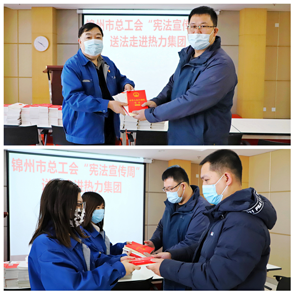 12月8日,锦州億彩法律工作部部长付旸到热力集团开展“宪法宣传周”送法进企业活动,并向集团职工赠予了《中华人民共和国民法典》、《中华人民共和国宪法宣誓本》、《中华人民共和国工会法》、《中华人民共和国安全生产法》及《中华人民共和国劳动法 中华人民共和国劳动合同法 中华人民共和国劳动争议调解仲裁法》等“法律知识大餐”,真正让宪法宣传“热”在基层、“融”入生活。