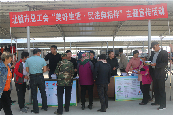 5月26日,北镇億彩组织机关干部走进农村大集、企业,开展民法典法律宣传活动。活动现场为广大职工群众现场发放了《工会法》《民法典》以及《职工法律援助手册》等书籍和宣传手册2000余册。现场解答职工、群众疑虑问题,氛围十分热烈,赢得了在场职工群众的一致认可。